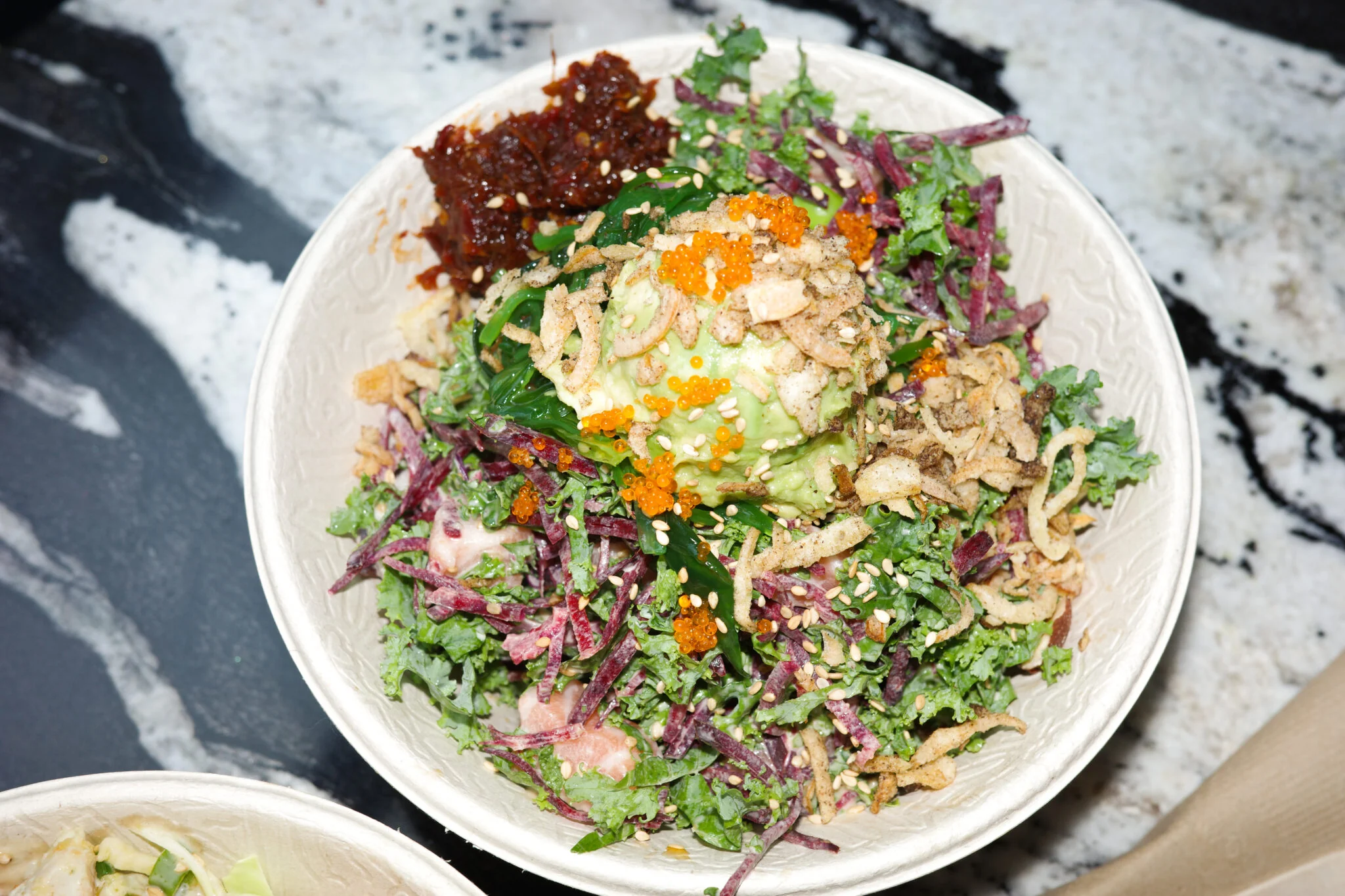 Square routes orders to the kitchen as placed. For THISBOWL's BYO model, a custom middleware layer translates customer selection order into make-line sequence — grains first, protein second, toppings last — so the kitchen can execute at speed without reinterpreting every ticket.